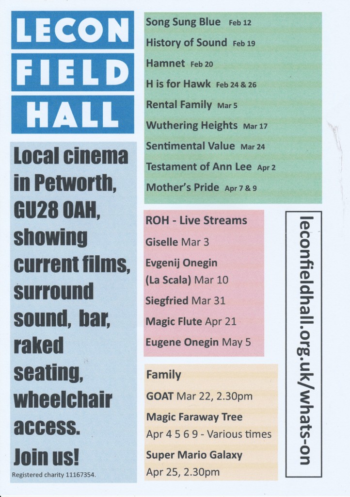 The Leconfield Hall cinema evenings continue with a great range of films for all tastes and all ages!
